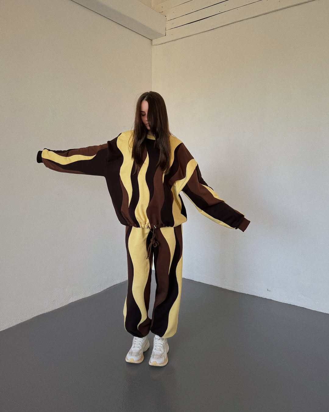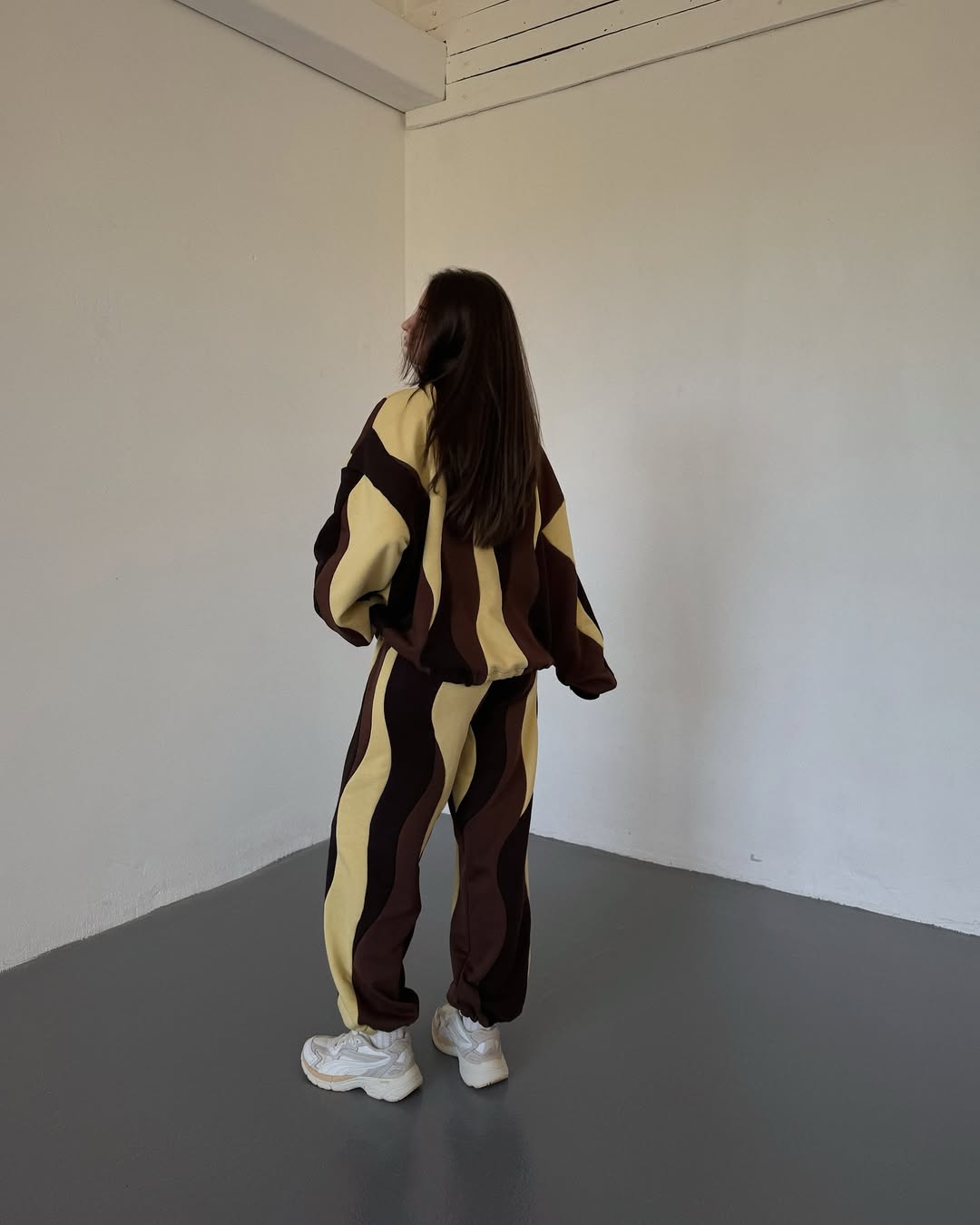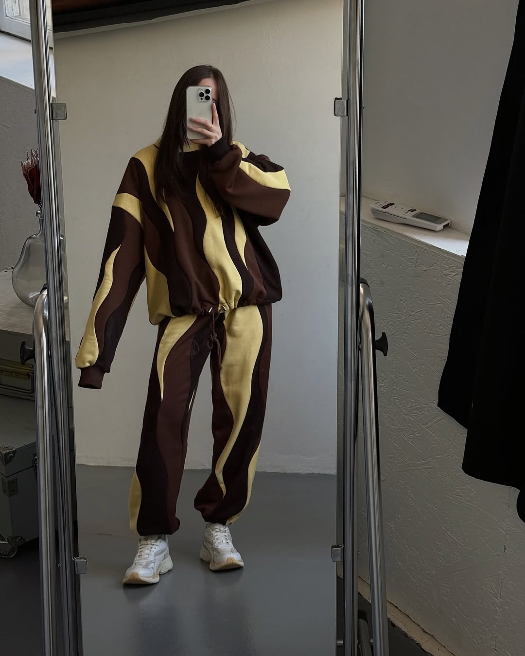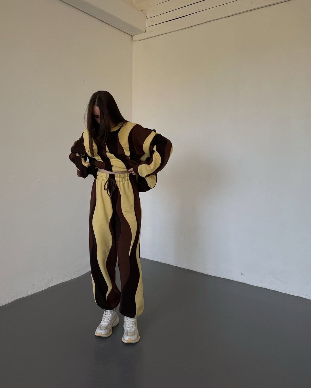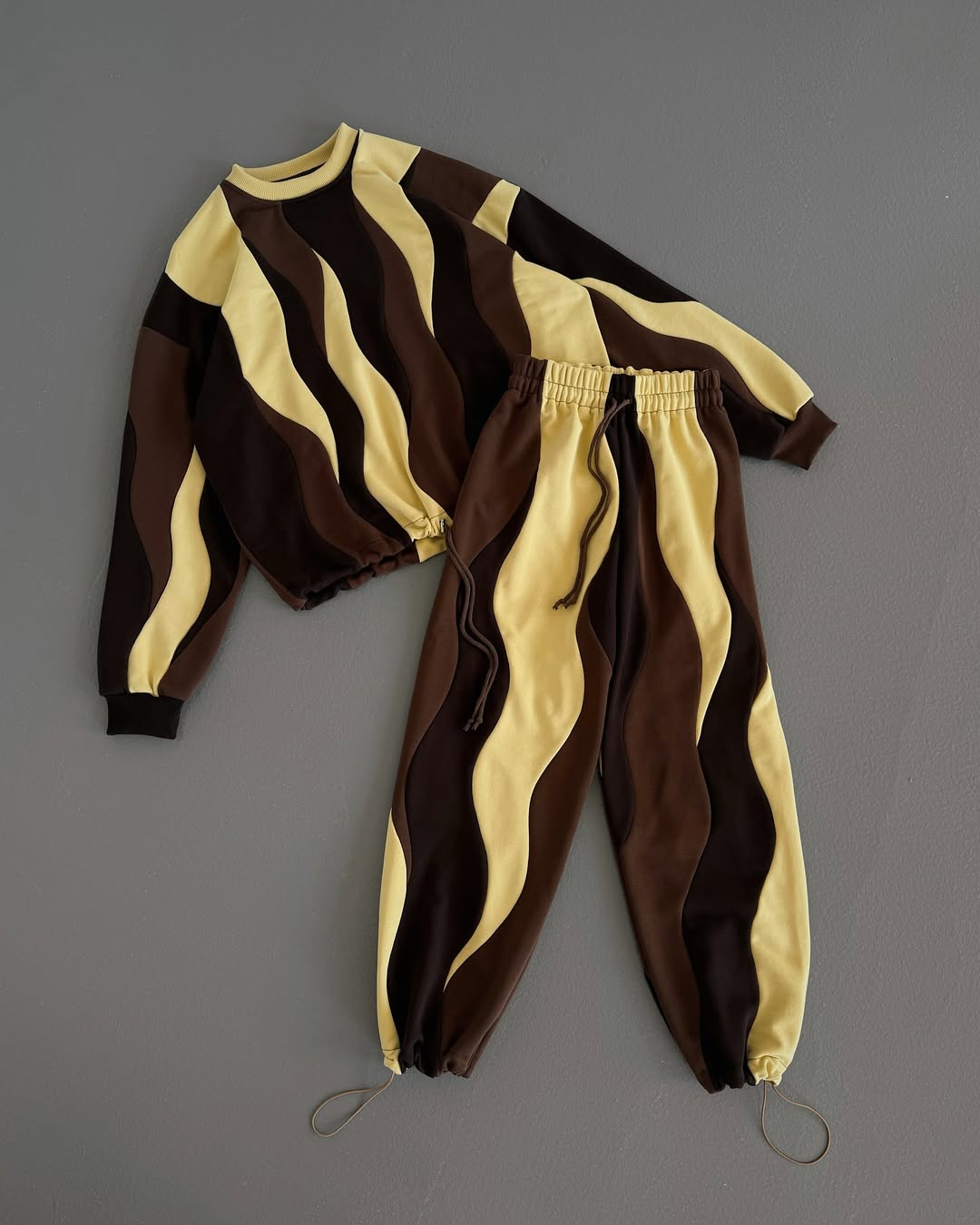 Warm caramel, chocolate, and soft beige waves swirl together for a cozy, dessert-inspired look.