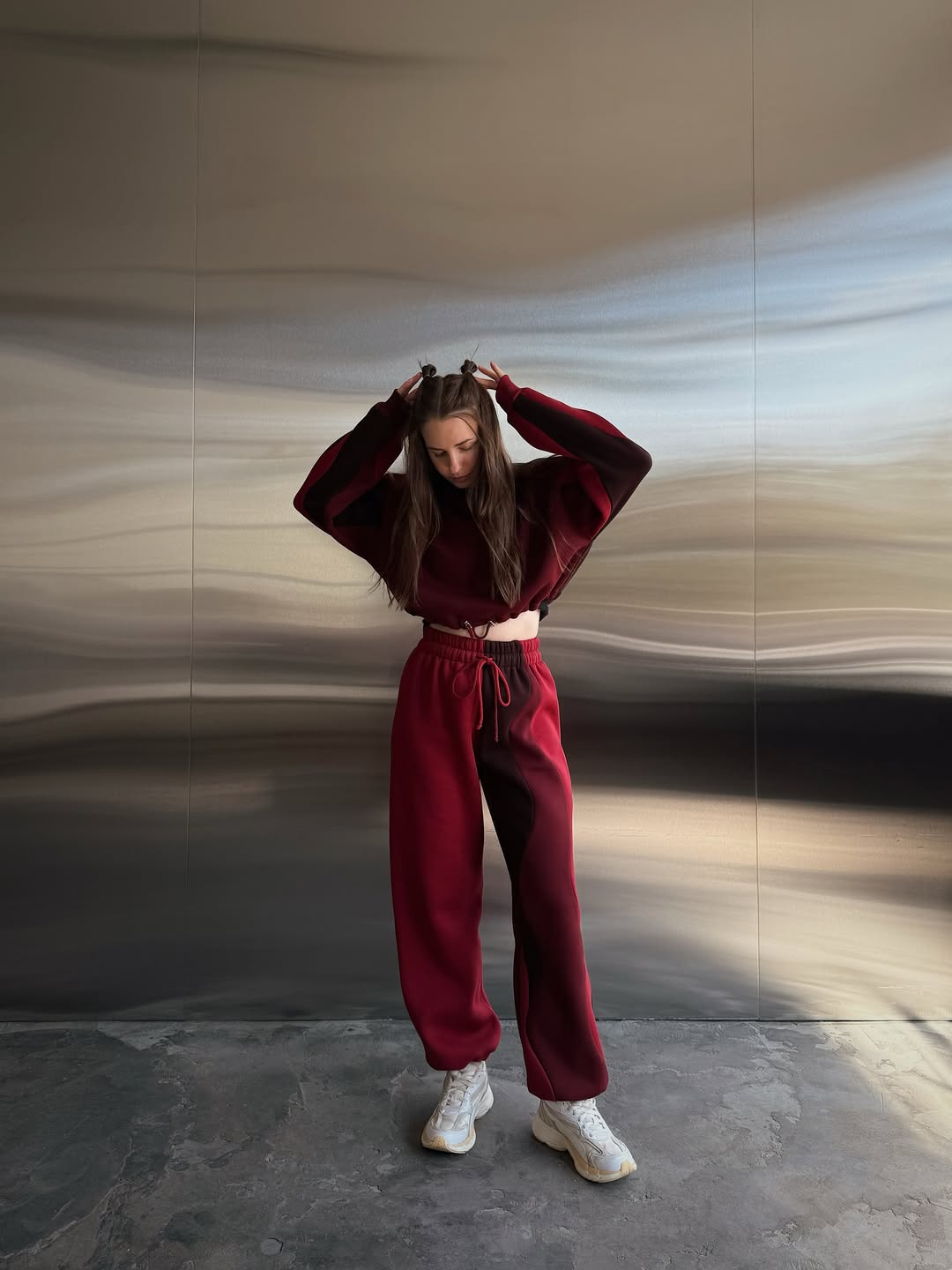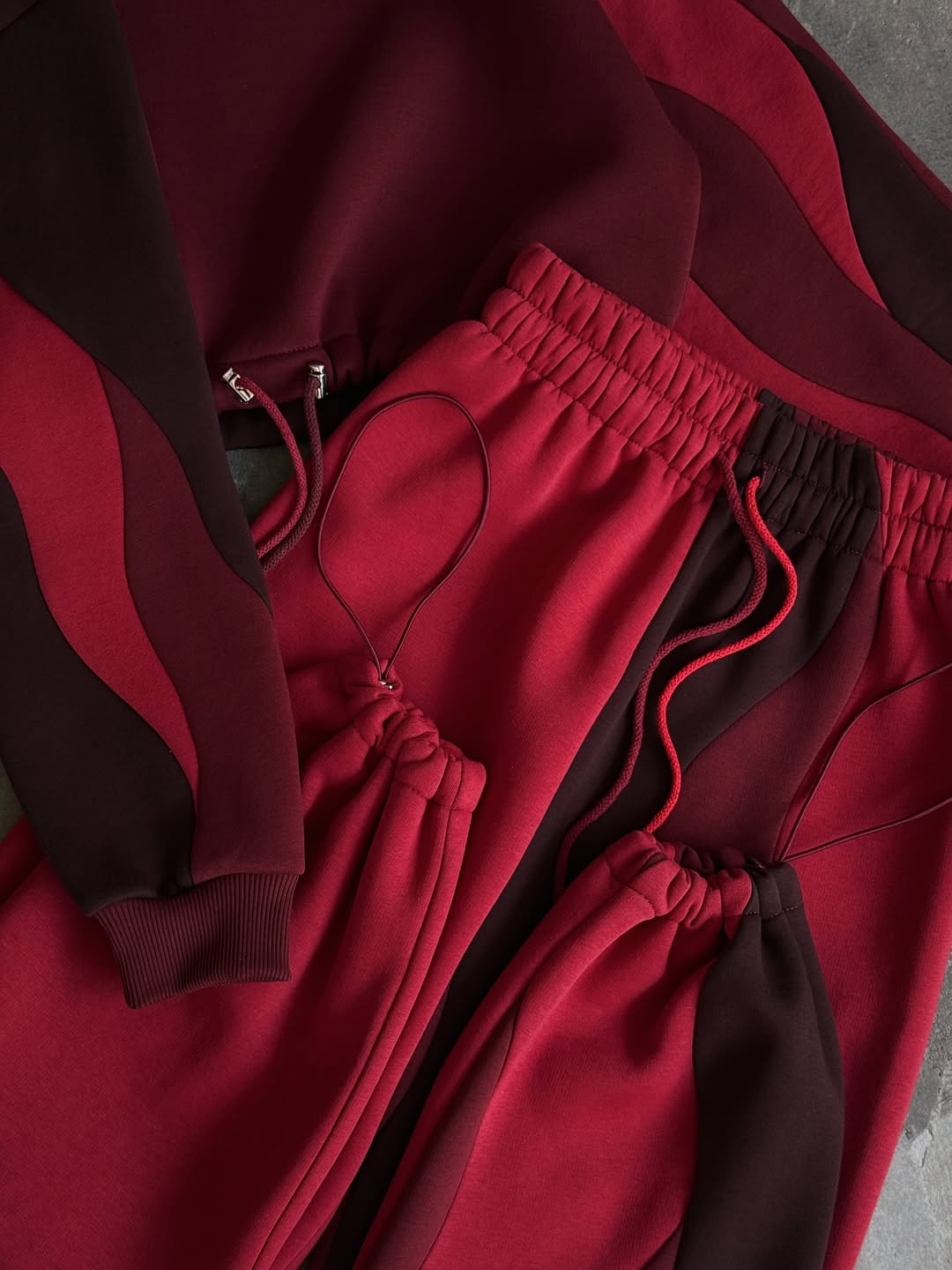 A bold mix of deep red and burgundy waves, creating a powerful, fiery look with rich contrast.