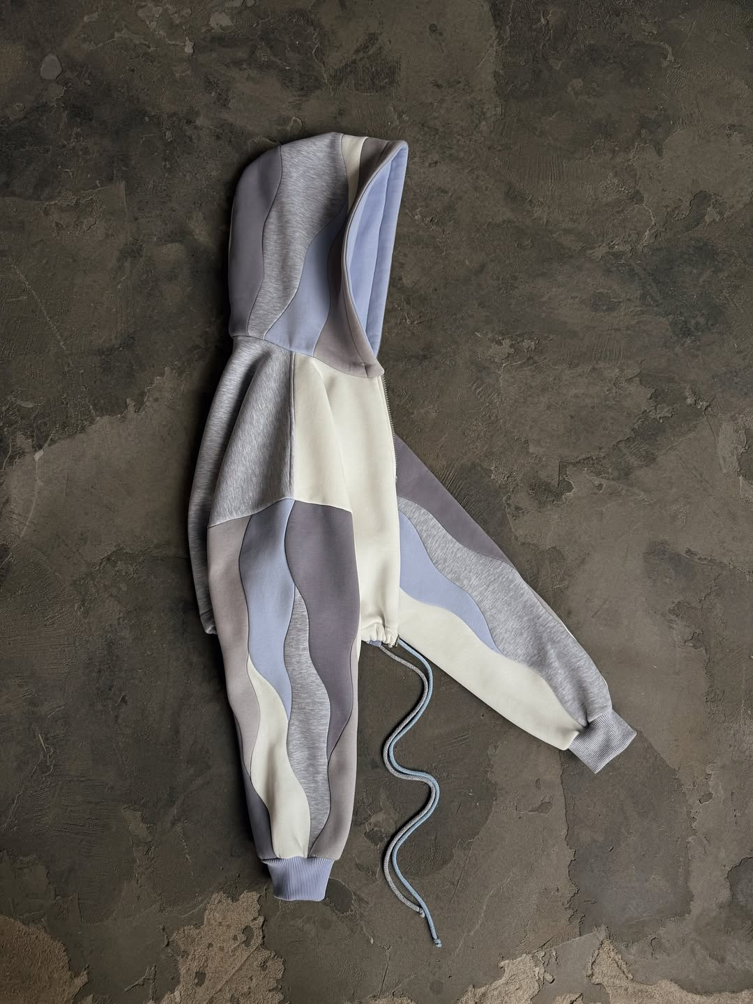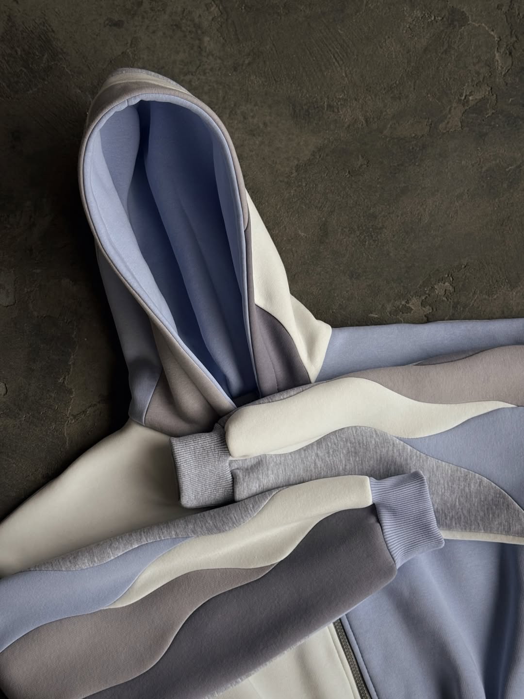 Soft, cloudy, minimal palette with smooth drifting lines.