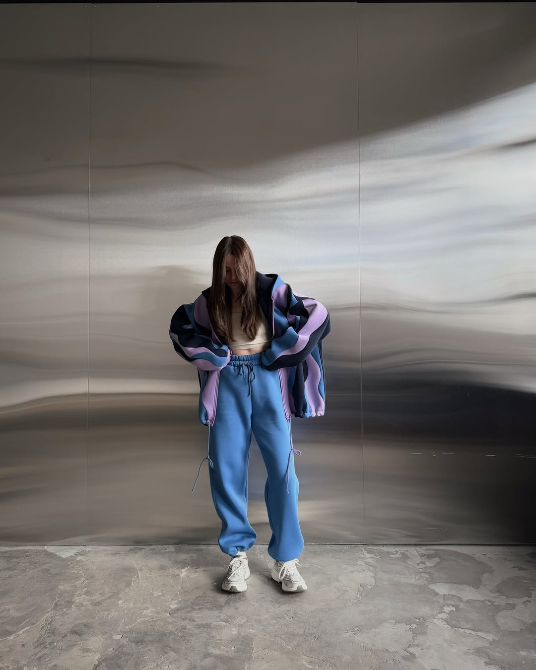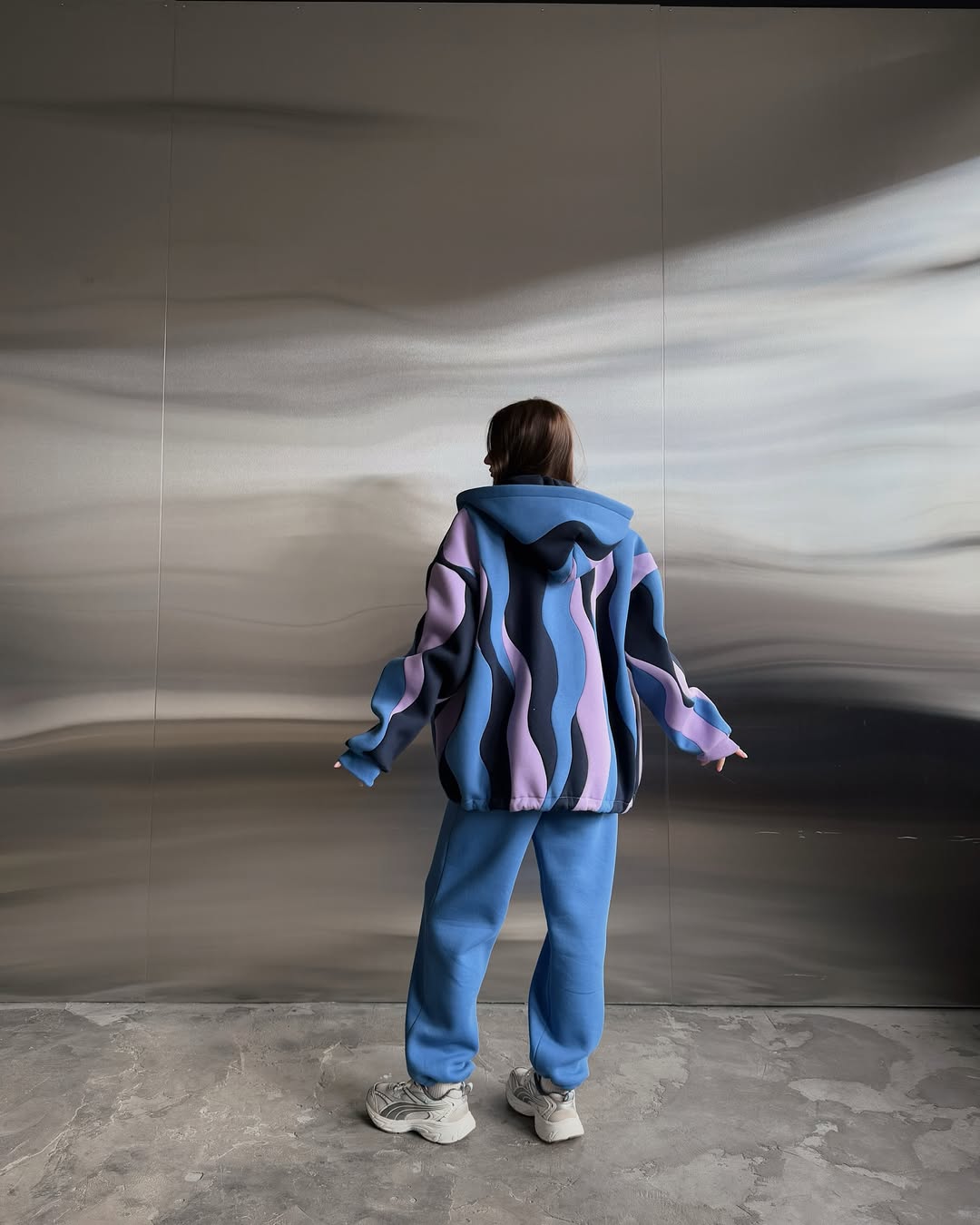 Soft lavender and deep navy waves blend into a calm, dreamy gradient with a cool-toned flow.